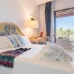 Lo stile Mediterraneo fa da padronanza in un'ampia camera di circa 25 mq. con maioliche siciliane dipinte a mano, vista su un caratteristico canneto eoliano.